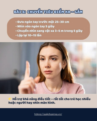 • Chuyển nhìn sang vật xa 3–5 m trong 5 giây