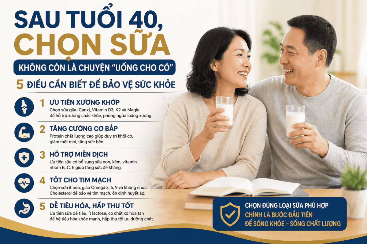 Sau tuổi 40, chọn sữa không còn là chuyện “uống cho có”: 5 điều cần biết để bảo vệ sức khỏe
